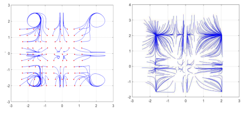 貴大新聞網(wǎng)訊(數(shù)學(xué)與統(tǒng)計學(xué)院)近日,國家天元數(shù)學(xué)西南中心貴州基地/貴州省數(shù)據(jù)驅(qū)動建模學(xué)習(xí)與優(yōu)化創(chuàng)新人才團隊、貴州大學(xué)數(shù)學(xué)與統(tǒng)計學(xué)院王錦榮教授團隊教師歐世勤以第一作者在計算機領(lǐng)域頂級期刊 IEEE Transactions on Fuzzy Systems 等期刊發(fā)表神經(jīng)網(wǎng)絡(luò)系列學(xué)術(shù)論文,為相關(guān)領(lǐng)域的研究提供了新的理論和方法。針對模糊神經(jīng)網(wǎng)絡(luò),給出了狀態(tài)依賴切換機制構(gòu)建了狀態(tài)依賴切換模糊神經(jīng)網(wǎng)絡(luò)模型,探討了系統(tǒng)參數(shù)在狀態(tài)依賴切換下多穩(wěn)定性和固定時間多穩(wěn)定性問題,旨在為神經(jīng)網(wǎng)絡(luò)在聯(lián)想記憶中的應(yīng)用提供理論依據(jù)。研究結(jié)果表明狀態(tài)依賴切換機制會導(dǎo)致系統(tǒng)的平衡態(tài)增加,使之在聯(lián)想記憶應(yīng)用中比傳統(tǒng)未切換的神經(jīng)網(wǎng)絡(luò)模型有更大的儲存容量。進一步考慮系統(tǒng)參數(shù)具有概周期性,得到了具有高斯激活函數(shù)的元切換模糊神經(jīng)網(wǎng)絡(luò)具有個穩(wěn)定的概周期解,下圖分別給出了具有高斯激活函數(shù)的2元切換神經(jīng)網(wǎng)絡(luò)在時變概周期參數(shù)與非時變參數(shù)下的相圖。此外,在系統(tǒng)實現(xiàn)多穩(wěn)態(tài)的基礎(chǔ)上,提出了多控制器組合控制策略以實現(xiàn)多個平衡態(tài)的固定時間收斂,建立了固定時間多概周期性、多周期性和多穩(wěn)定性的判定準則,相關(guān)結(jié)果已投稿且被(IEEE Transact